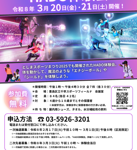 毎日平日に「豊島区内のニュース」をお届けします。 【今日のトピックス】 ①新感覚スポーツを体験しよう!HADO体験会 https://www.city.toshima.lg.jp/501/2602121032.html …