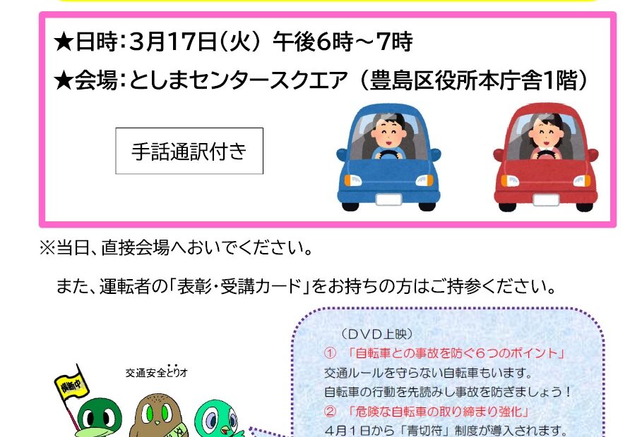毎日平日に「豊島区内のニュース」をお届けします。 【今日のトピックス】 ①交通安全講習会(兼運転者講習会)を開催します https://www.city.toshima.lg.jp/335/2512011327.html…