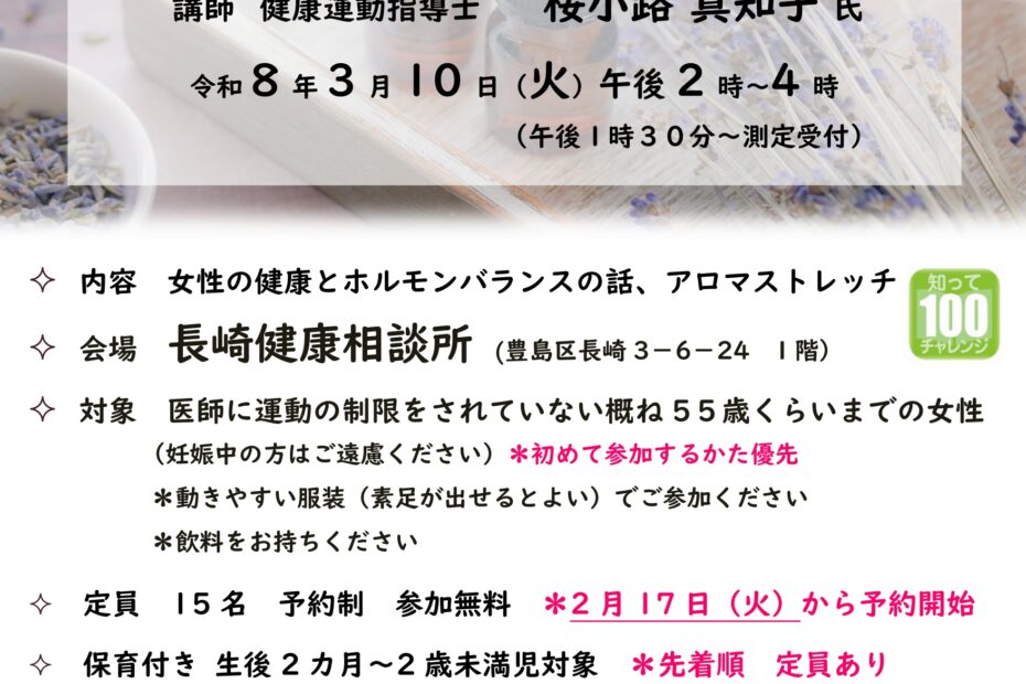 毎日平日に「豊島区内のニュース」をお届けします。 【今日のトピックス】 女性の健康教室 ゆるくきれいになる方法!女性ホルモンを知ってこれからの人生ココロもからだも健康に! https://www.city.toshima…